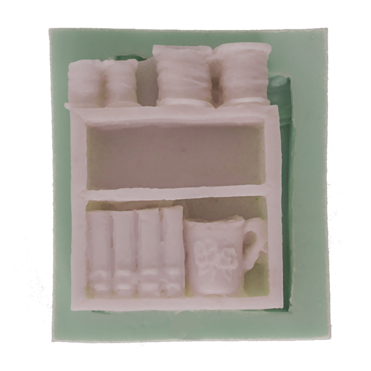Kurdelya Vintage Kitaplı Mini Raf Silikon Döküm Kalıbı (Minyatür Mobilya Koleksiyonu İçin – 4×4,5x1cm – KK-1238)