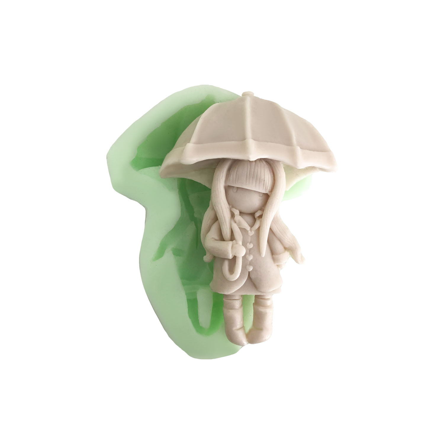 Mevsim geçişlerini simgeleyen 7×10,5x2cm boyutlarındaki şemsiyeli kız kalıbımız, dinamik projelerinize hareket katar.