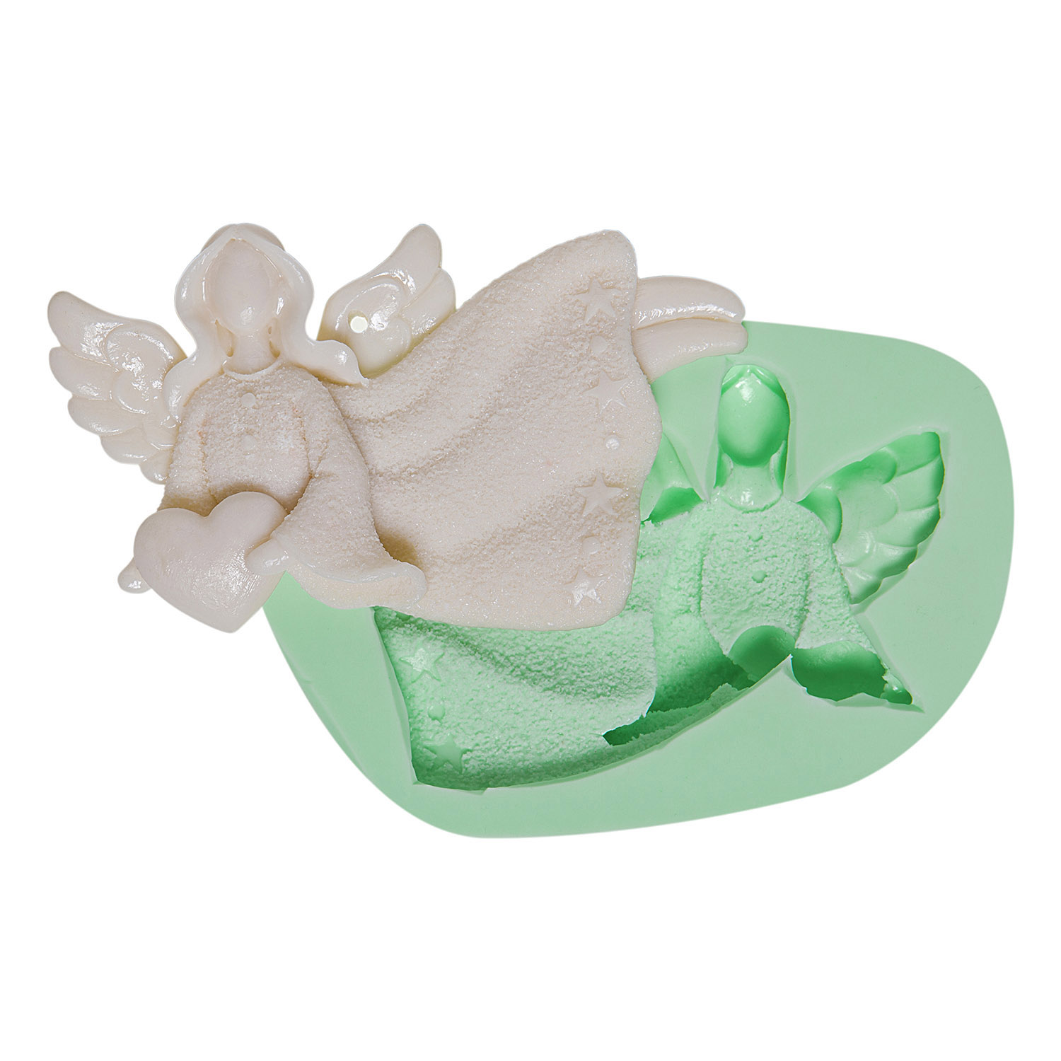 Kutlama sezonunun tinsel yönünü yansıtan 10,5×6,5x1cm boyutlarındaki yılbaşı meleği kalıbımız, tatil projelerinize maneviyat katar.