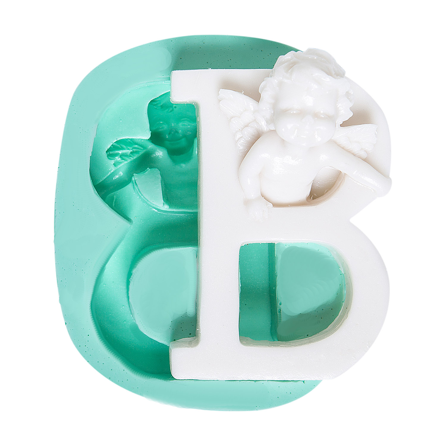 B harfinin kıvrımlarını süsleyen melek motifleri, harf tasarımına kutsal ve zarif bir boyut ekler. Kişiselleştirilmiş süs yapımı için özel formüle edilmiş silikon kalıbımız, reçine, alçı, sabun ve kokulu taş ile mükemmel sonuçlar verir.