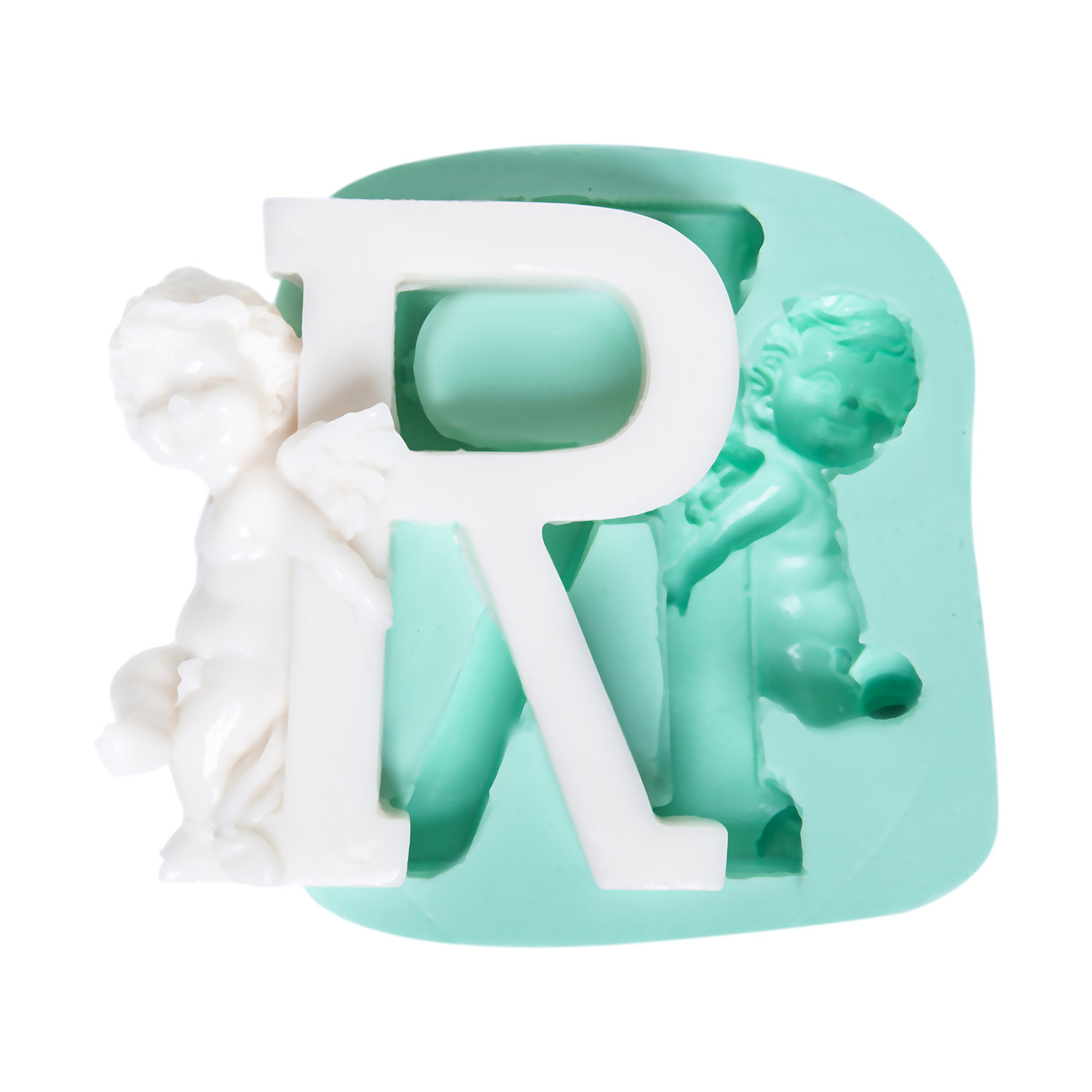 R harfinin kıvrımlı bacağında yer alan zarif melek figürü, güçlü forma ruhani bir boyut ekler. Kişiselleştirilmiş dekorasyon için özel tasarlanan silikon kalıbımız, reçine, alçı, sabun ve kokulu taş ile kusursuz sonuçlar verir.