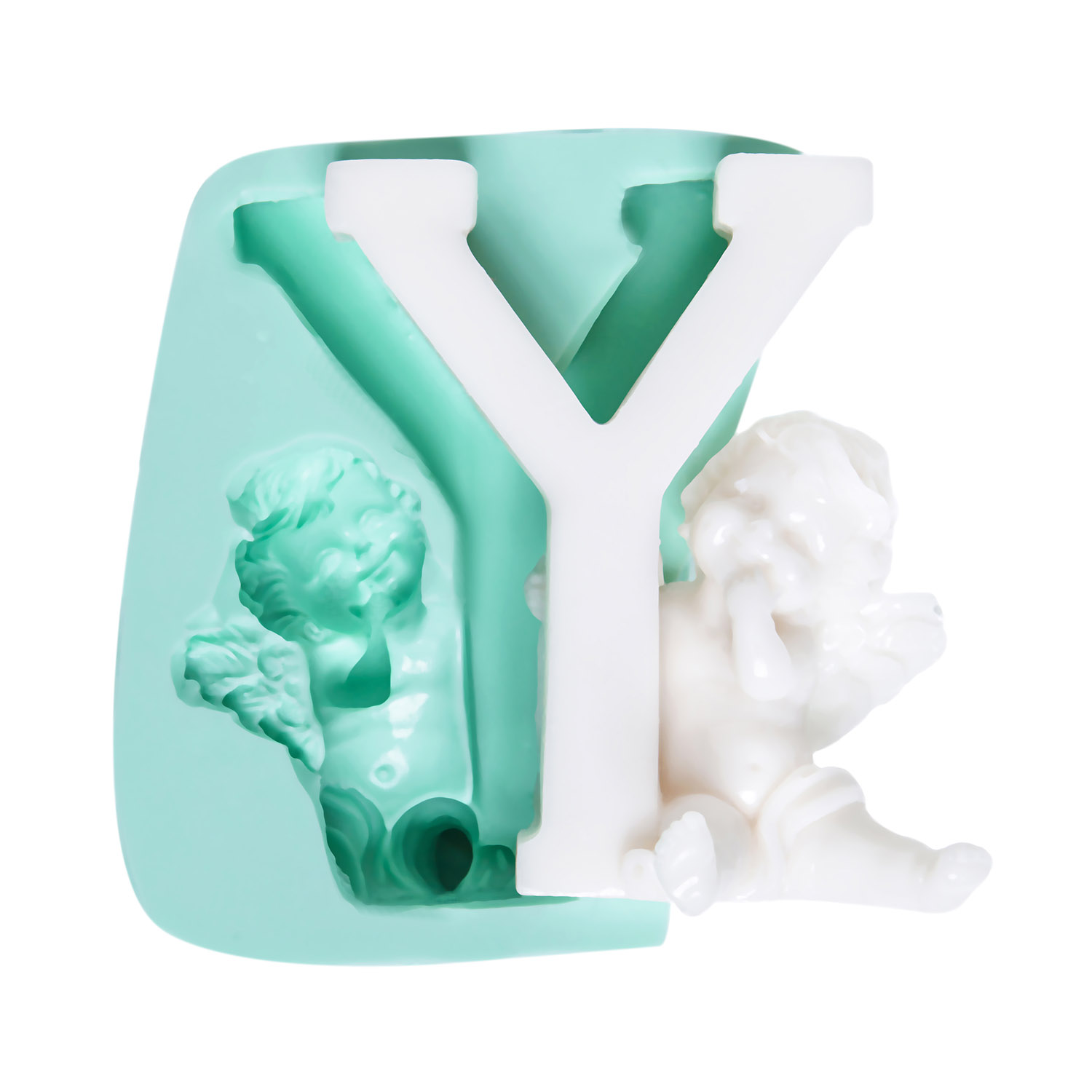 Karakteristik Y harfi geometrisi ve uyumlu melek figürü, akılda kalıcı bir görsel denge oluşturur. Süs yapımı için özel formüle edilmiş silikon kalıbımız, reçine, alçı, sabun ve kokulu taş ile mükemmel sonuçlar verir.