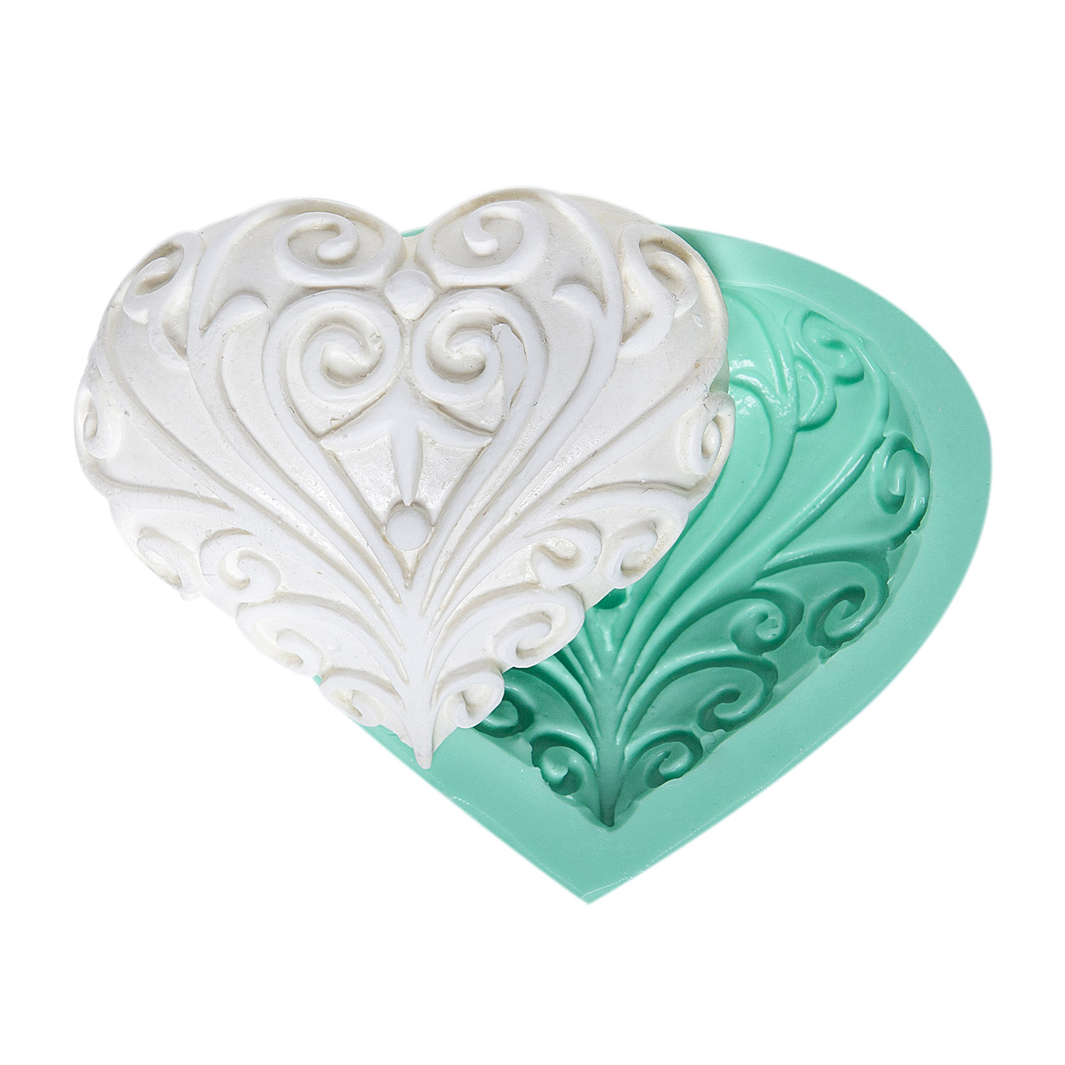 Zarif Desenli Kalp Silikon Kalıp | Romantik Süsleme Amaçlı
