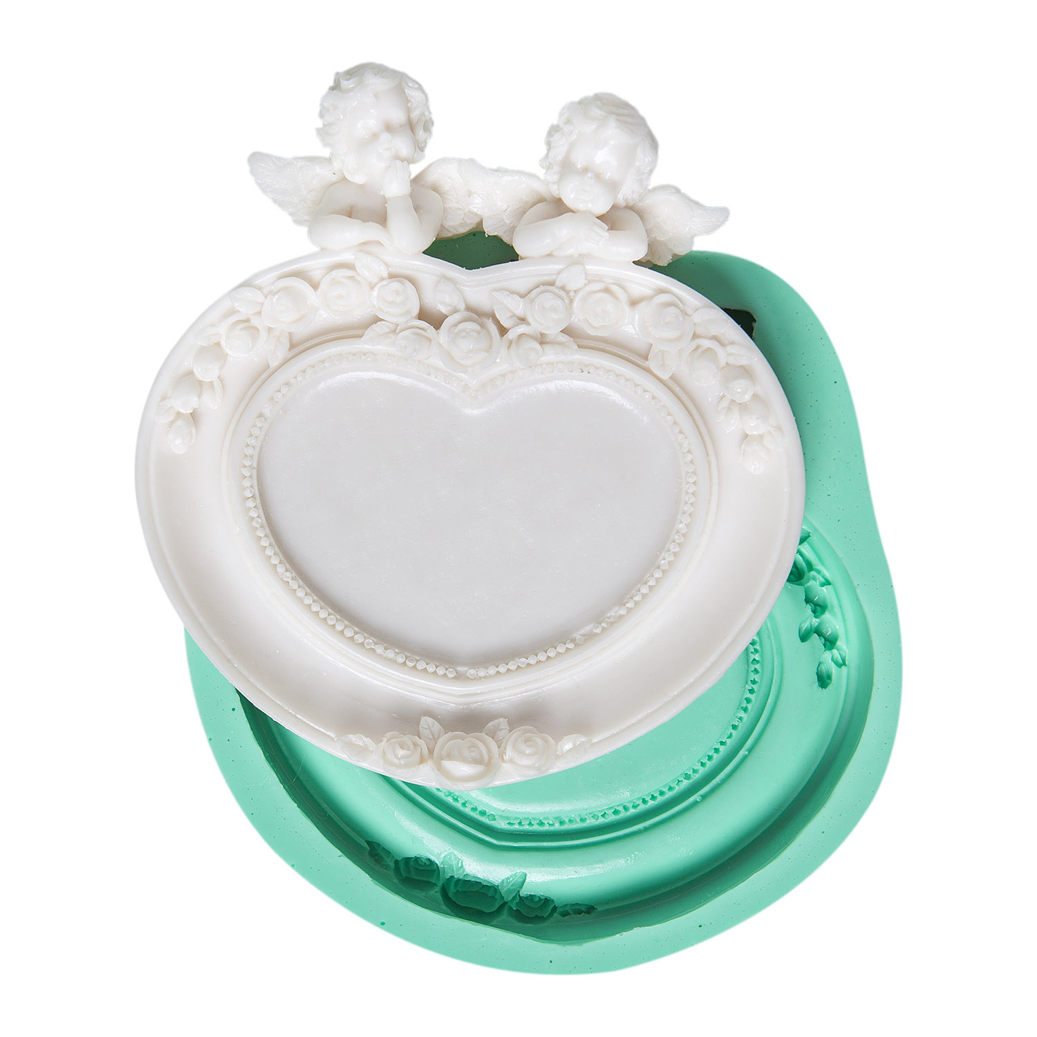 İki zarif melek figürü, koruyucu kanatlarıyla çerçeveyi sarar. İnce melek detayları ve kanat dokuları gerçekçi bir derinlik sunar. Yüksek kaliteli silikondan üretilen kalıbımız, reçine, alçı, sabun ve kokulu taş ile kusursuz sonuçlar verir.