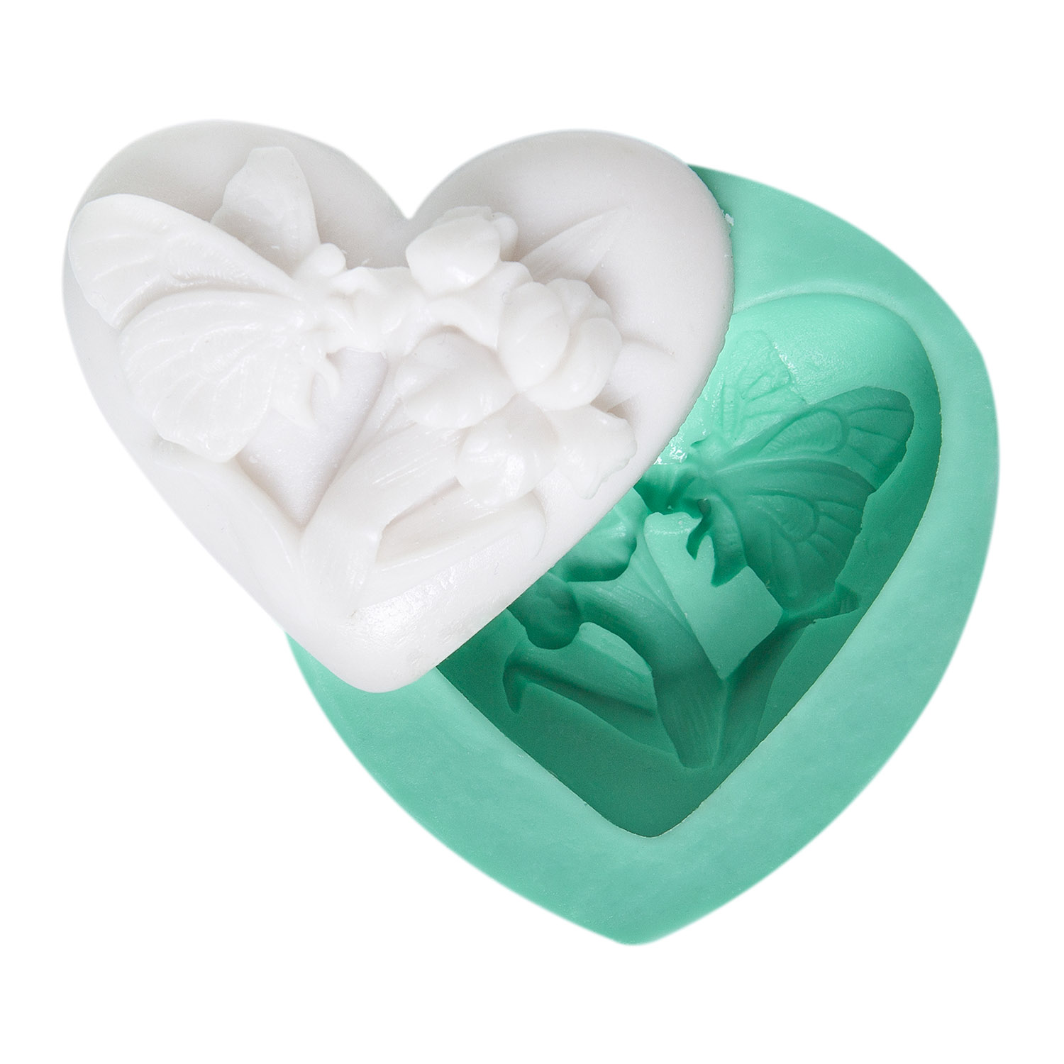 Kalp formu içerisine yerleştirilmiş çiçek ve kelebek detayları, doğanın ve aşkın uyumunu simgeler. Yüksek kaliteli silikondan üretilen kalıbımız, reçine, alçı, sabun ve kokulu taş ile en ince detayları bile mükemmel şekilde yansıtır.