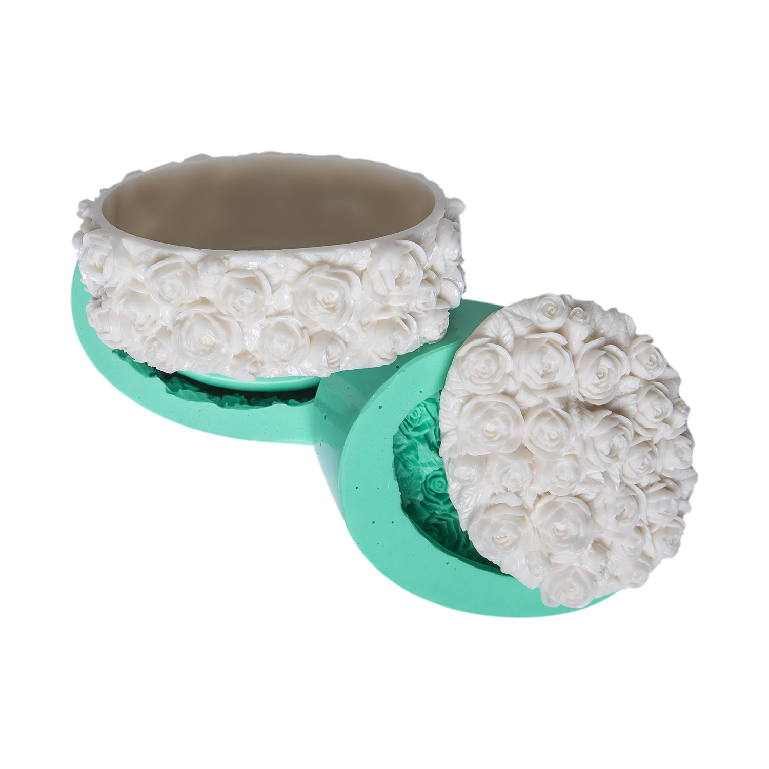 Detaylı gül motifleri ve fonksiyonel kutu tasarımı, hem dekoratif hem de kullanışlı bir obje yaratmanızı sağlar. Takı organizatörü yapımı için özel formüle edilmiş silikon kalıbımız, reçine, alçı ve sabun ile keskin detaylar sunar.