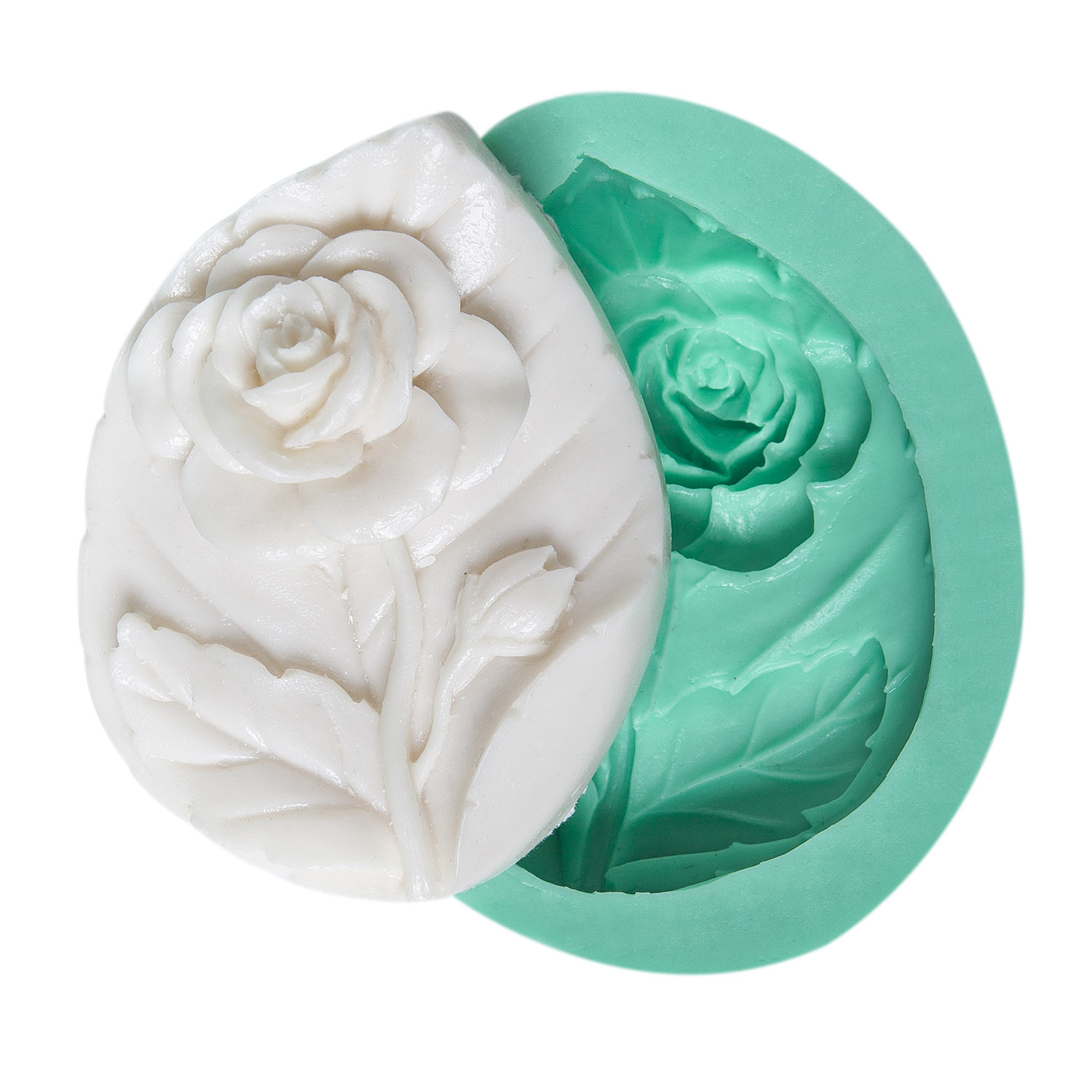 Detaylı gül çiçeği ve taşıyıcı yaprak formu, doğanın dengeli güzelliğini simgeler. Doğa ve çiçek temalı dekorasyon için özel formüle edilmiş silikon kalıbımız, reçine, alçı, sabun ve kokulu taş ile en ince detayları bile kusursuz yansıtır.
